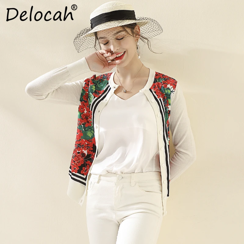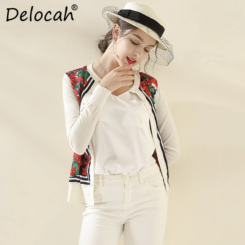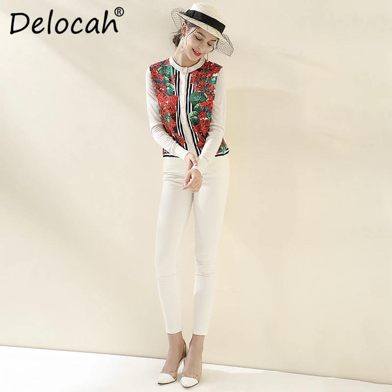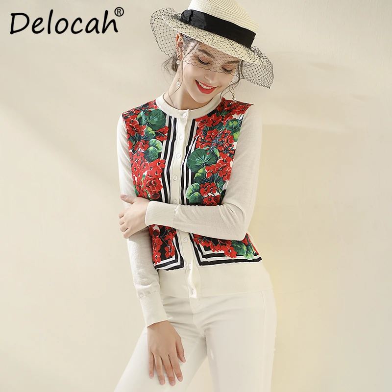 amazing Delocah Runway Fashion Autumn Winter Cardigans Blouse Women's Long Sleeve Floral Print Elegant Vint