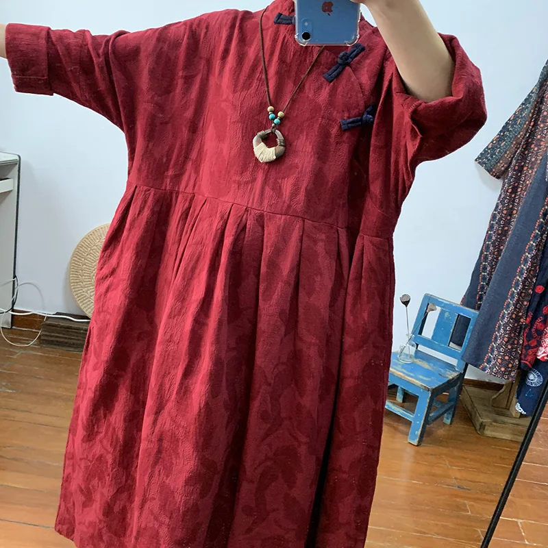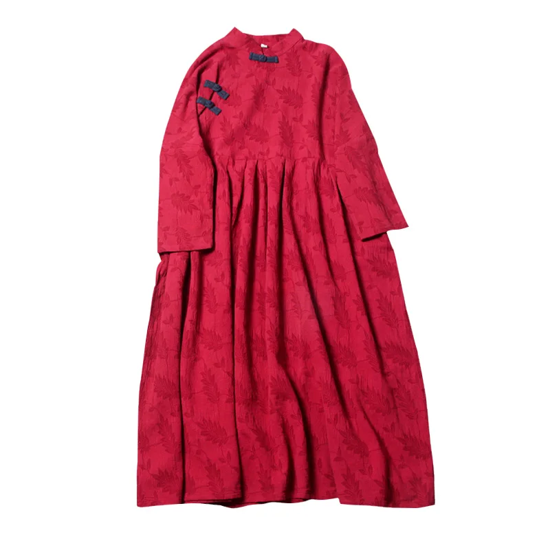 price cut Real-time Chinese women's dress vintage placket loose large-size cotton and linen long